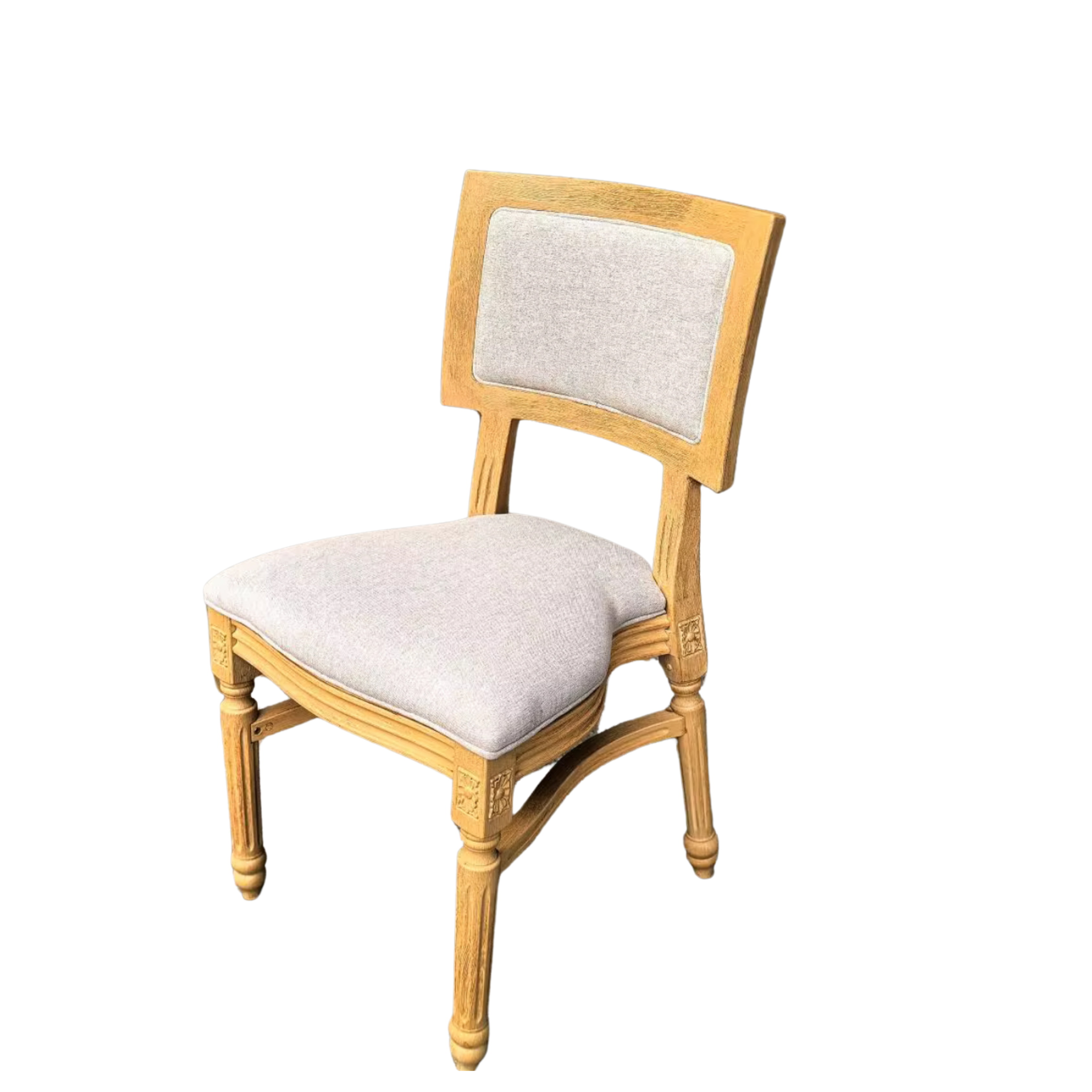 The Willow Chair combines elegance and practicality with a lightweight plastic frame designed to mimic natural wood. Finished with a soft upholstered seat, it’s perfect for weddings, private events, and refined dining setups.