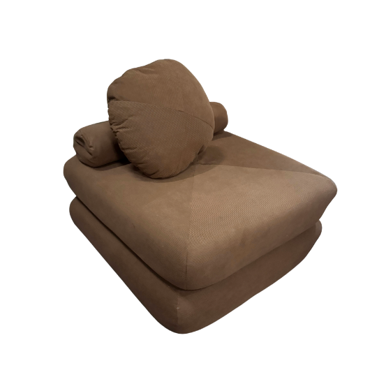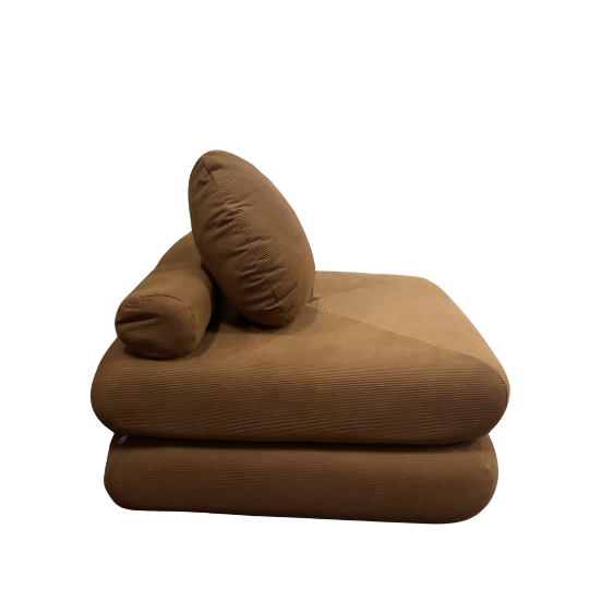 Soft orange-rust ottoman ideal for adding warmth and colour to lounge groupings.